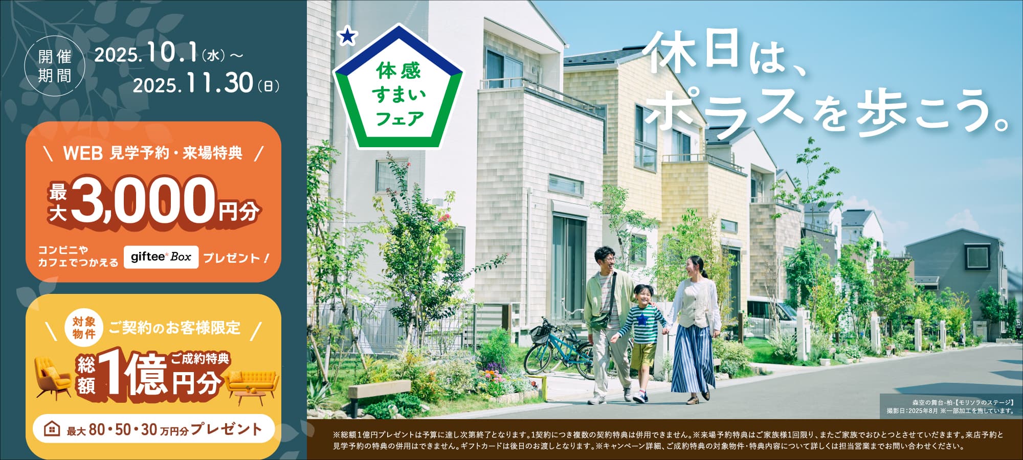 公式HPから見学予約の上ご来場いただいた方には、コンビニやカフェで使える【giftee Box(ギフティボックス)】最大3,000円分をプレゼント!