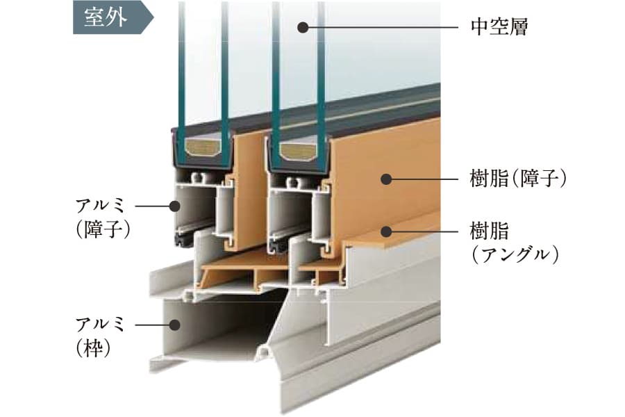 ハイブリッド給湯・暖房システム ガスと電気の特性を併用したハイブリッドな給湯・暖房システム。キッチンやシャワー、洗面などで使用するお湯を電気で効率よく沸かしたり、素早く部屋を暖めて快適にしながら光熱費の削減を実現します。「ECO ONE」(70Lタイプ) | ![]() | 断熱等性能等級5・一次エネルギー消費量等級6 窓の室内側に、断熱性・防露性に優れた樹脂のメリットをプラスさせた高い断熱性能を実現したアルミ樹脂複合窓を採用。断熱性能等の省エネルギー性能が確保されていることを証明する、断熱等性能等級【等級5】かつ、一次エネルギー消費量等級【等級6】を取得しています。 | ![]() |