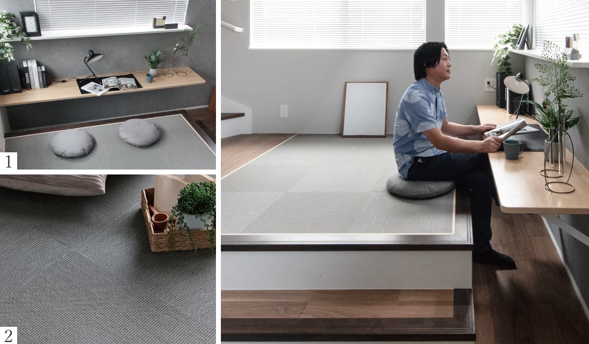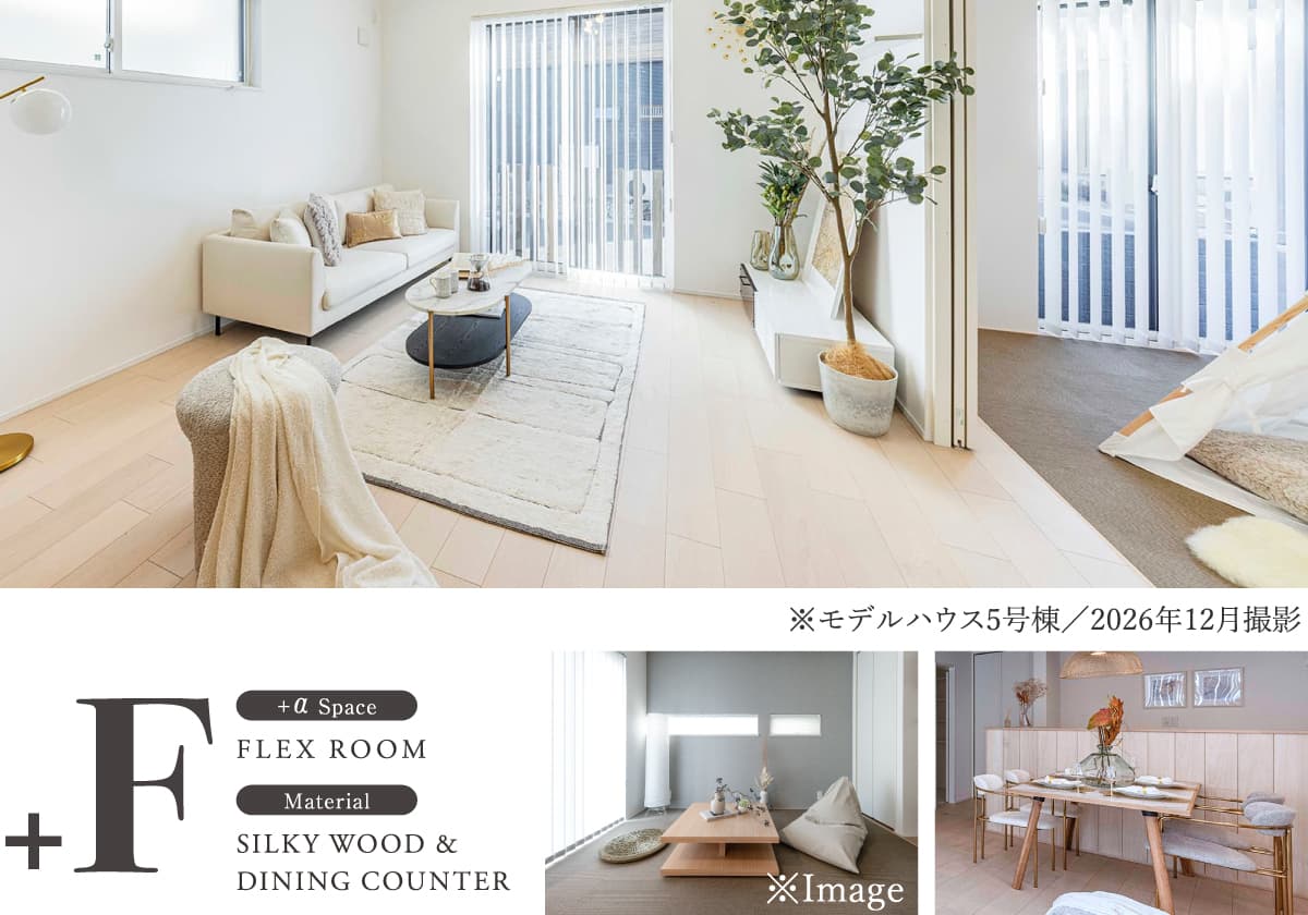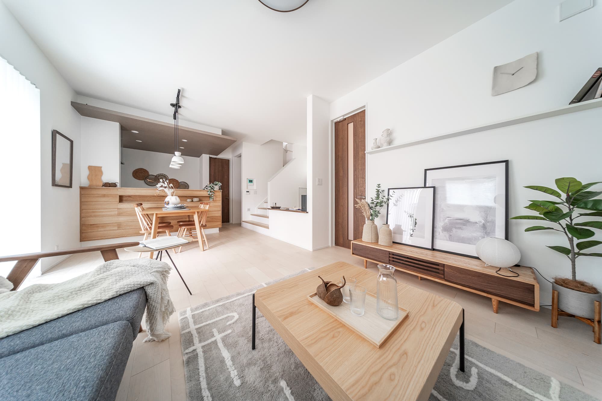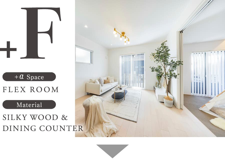 ![]() | 天然木の突き板にドライで落ち着いた微着色を施し、マットに仕上げたフロアを採用。ライティングを印象に魅せながらもまぶしさを抑え、リビングを心地良く、くつろげる空間へと演出します。 |