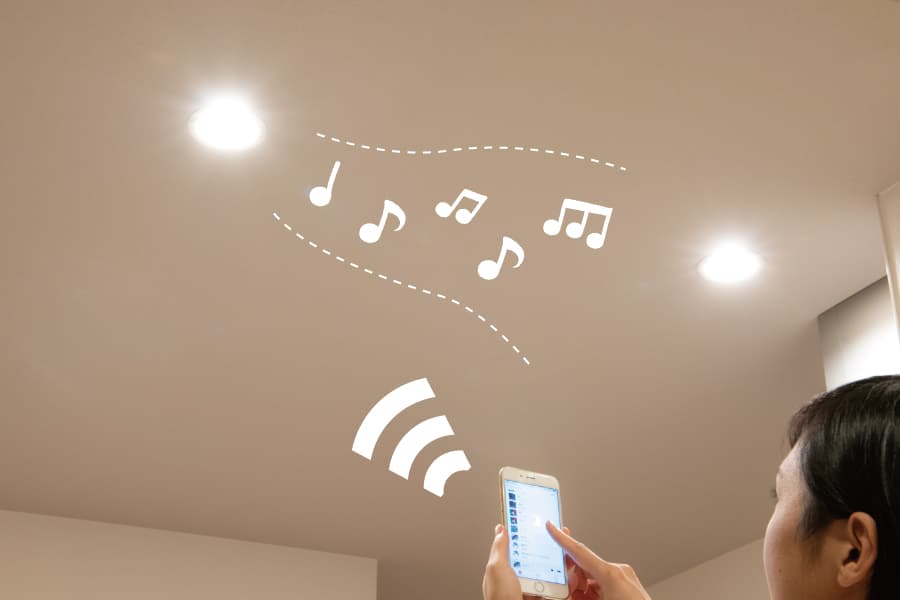 照明としての役割に加え、Bluetoothに接続して手軽に音楽を再生できるダウンライト。音楽を流すことで雰囲気を演出したり、様々なシーンを楽しめます。