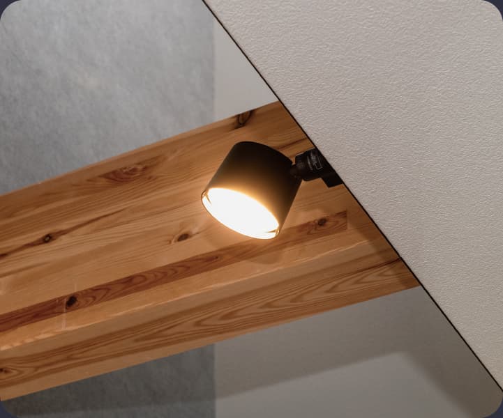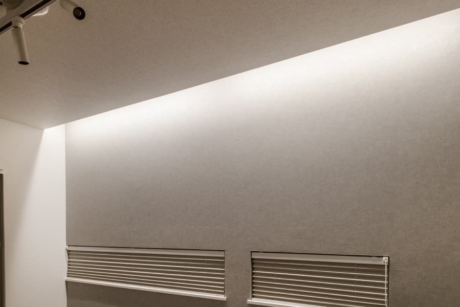 光を壁面に当てることで壁面を明るく照らしながら、昼間とは違った光の陰影を創出。空間に奥行きが生まれ、より広く感じさせる効果も期待できます。