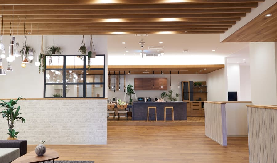 建築化照明によりあらかじめ設えた灯かりに、自分の好みに合った照明アイテムを組み合わせることで空間を自由に演出。 ポラスのインテリアショールームでコーディネートの相談が可能です。