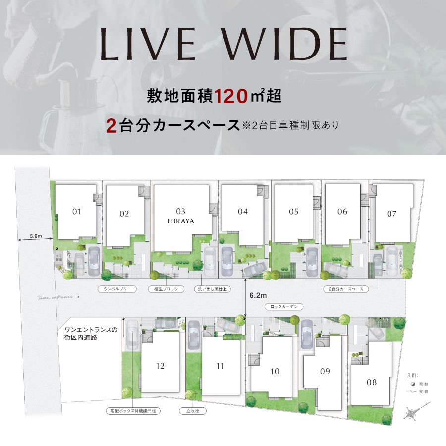 東武東上線『新河岸』駅徒歩18分、JR川越線「川越」駅徒歩37分(自転車9分※実測)◆全12邸、120㎡超◆ナチュラルモダンな佇まいを演出するアクセントとなるサイディング◆豊かな風景を創る植栽計画◆ゆとりをデザインした住まいのかたち◆1階/木の素材と空間が魅せる3つのプラン【ステージリビング】家族が程よくつながる、開放的なステージ空間がある暮らし【フレックスルーム】変化する暮らしに寄り添う、自由自在な続き間空間のある暮らし◆2階/ドレスコーナーが叶えるゆとりの暮らし【ドレスコーナー】スリム洗面台+収納(またはストレージ)◆デザイン性と機能性を誇る、快適な日常をサポートする設備