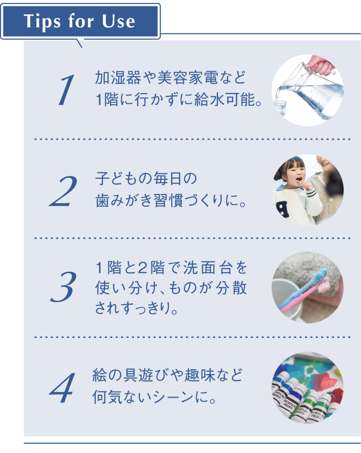 洗顔から身支度まで使えるセカンド洗面台+α。