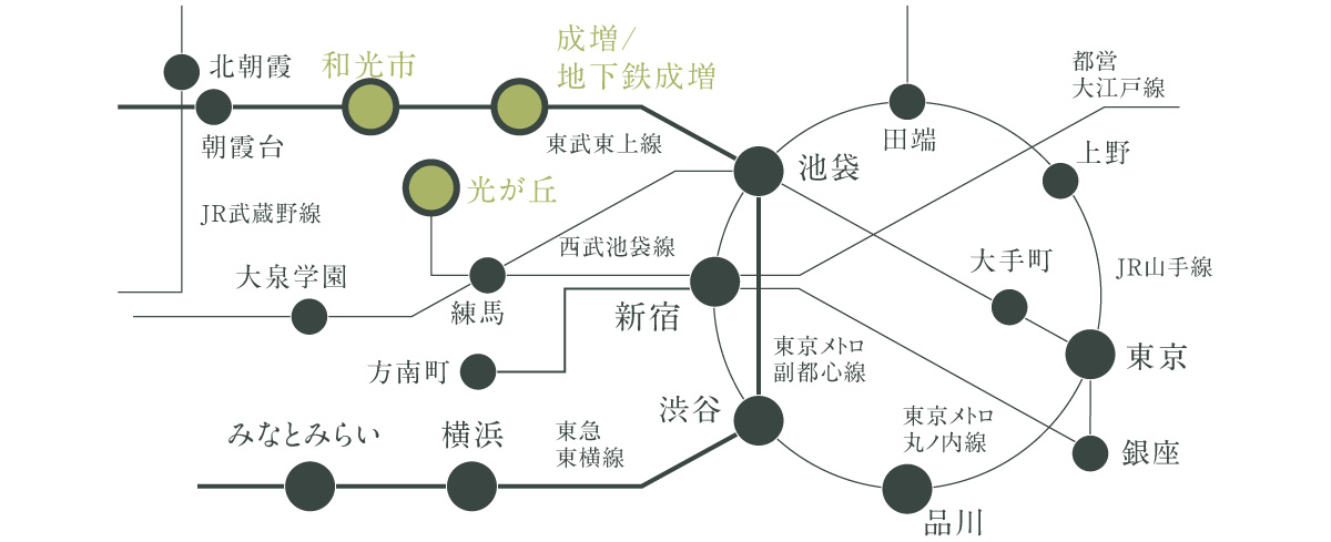 最寄りの大泉JCTを起点に都心へはスムーズに、郊外へはダイナミックに。関越・外環のダブルアクセスが、週末の遠出もビジネスも軽やかに叶えます。