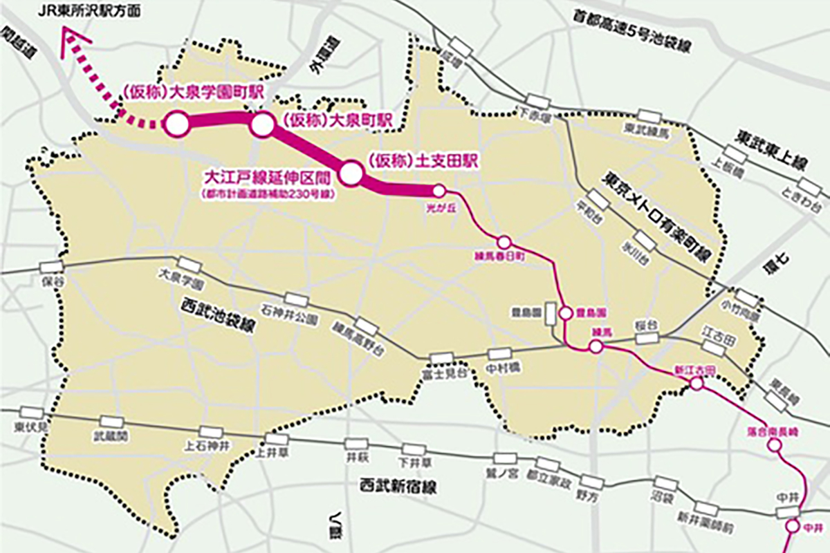 計画されている大江戸線の延伸により、移動時間の更なる短縮が期待されています。光が丘駅から先、大泉町エリアへの延伸が実現すれば、都心主要拠点へのアクセスは劇的に進化します。