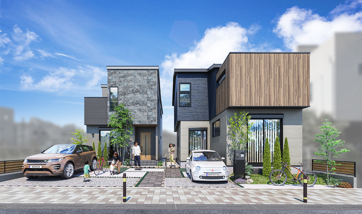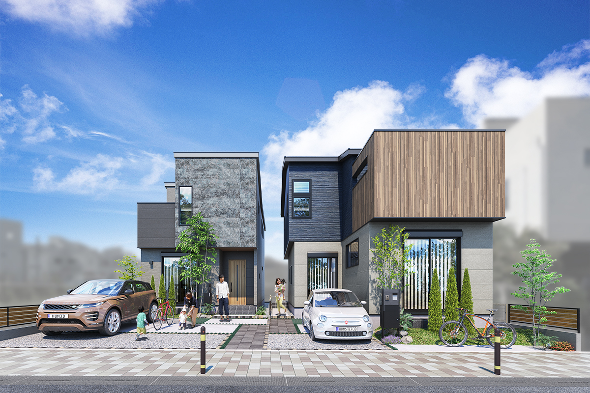 穏やかな住宅街に誕生する2邸。