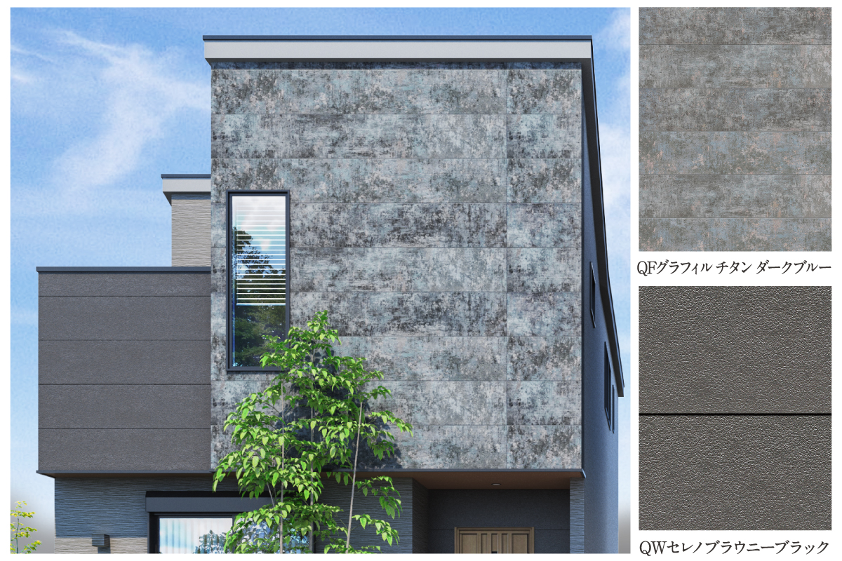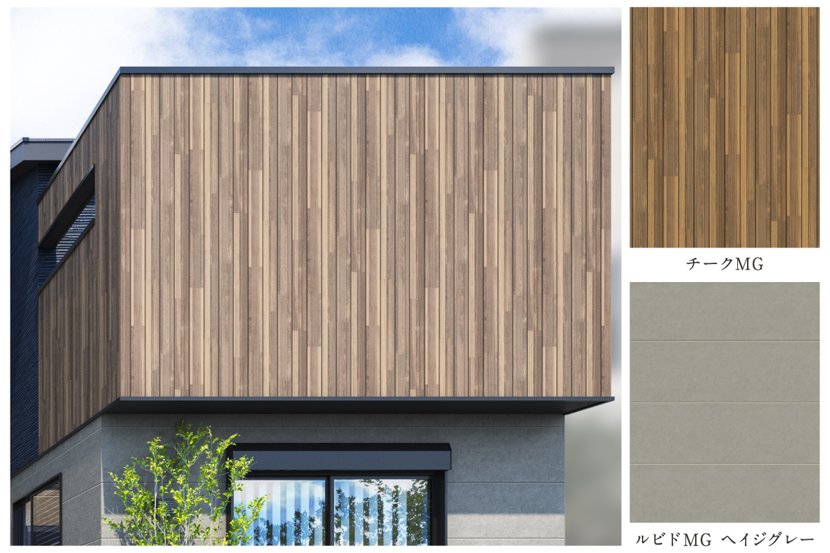 木調や石調の質感異なる外壁を組み合わせることで上質な雰囲気を纏わせたデザインです。