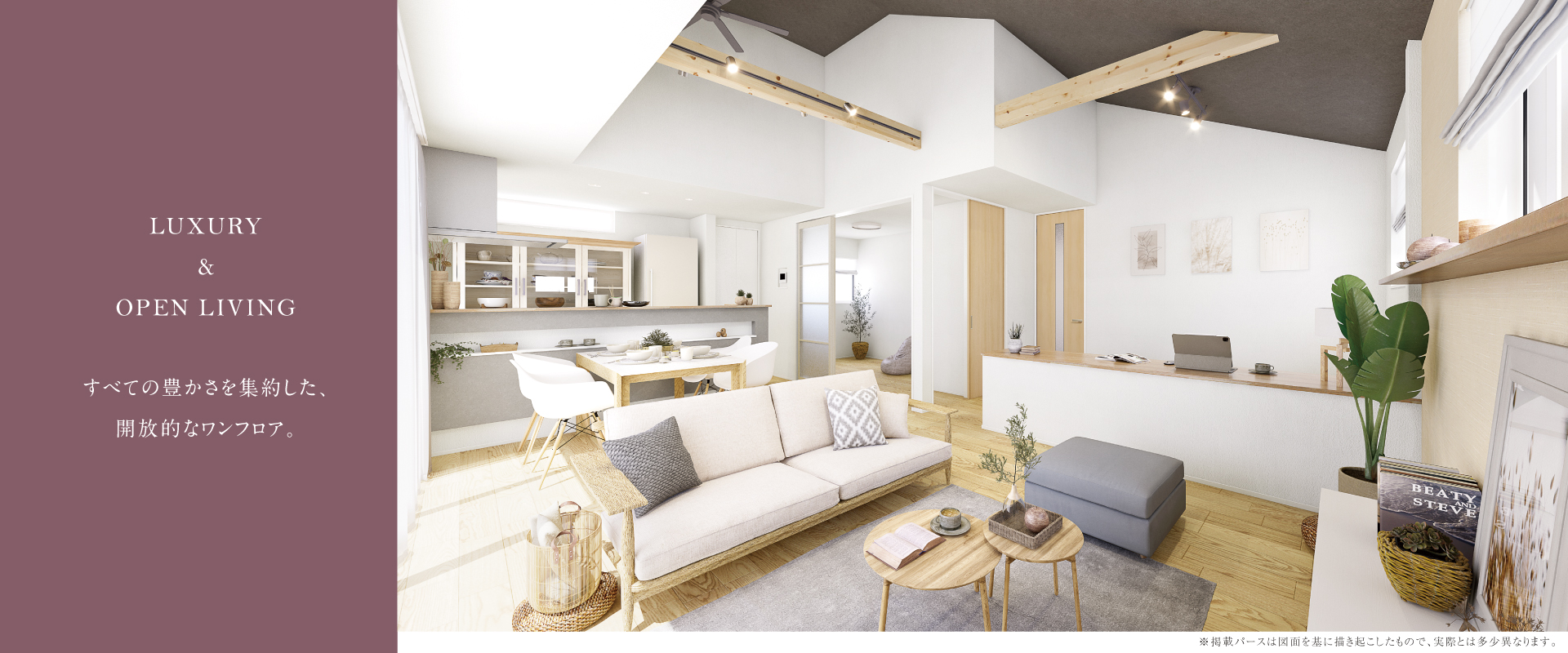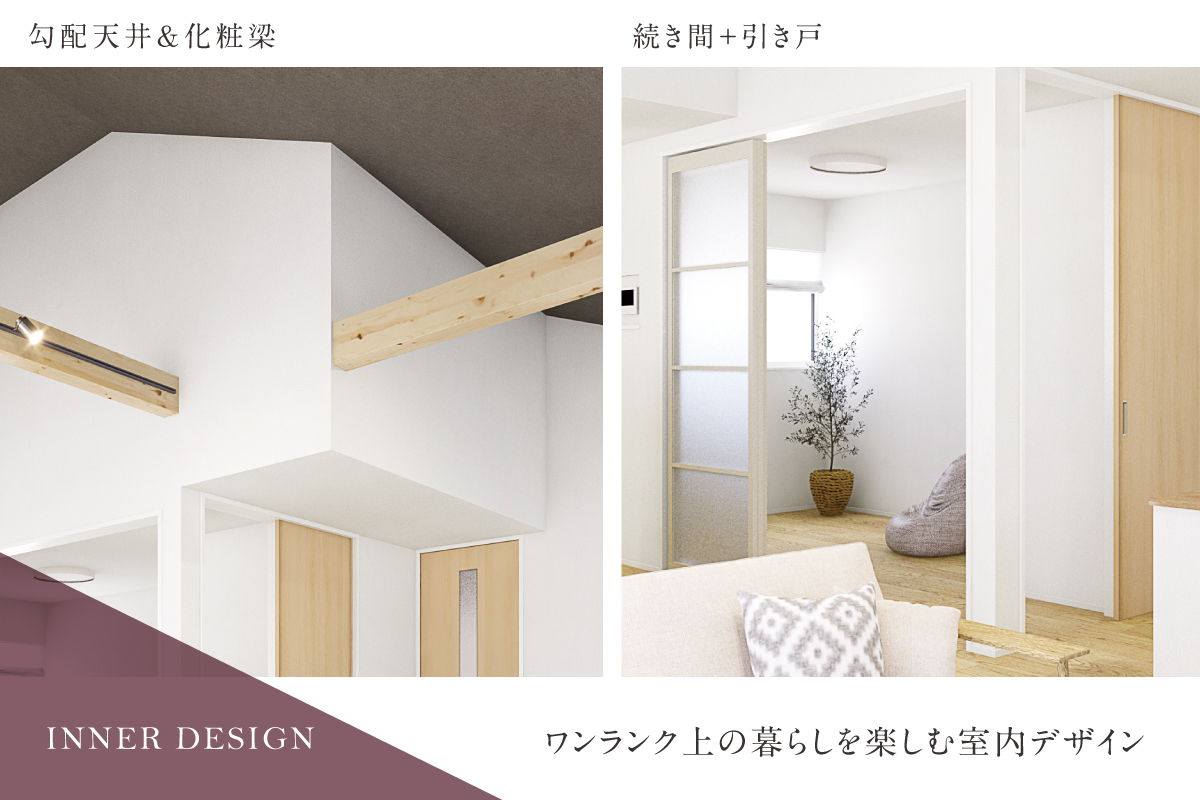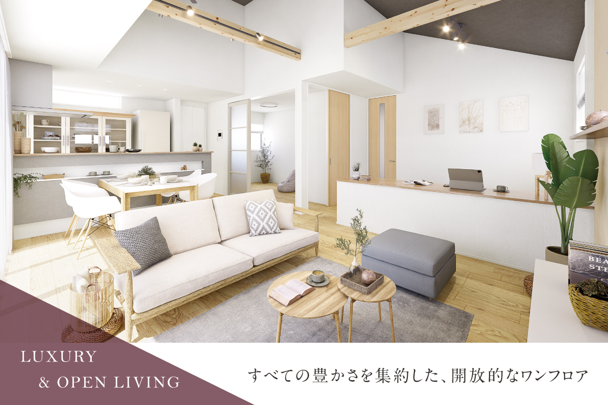 全邸敷地面積190m2超という贅沢な地に、日本の美意識を受け継ぎ現代に昇華させた、美しい平屋の住まいが誕生。大空間リビングや可変性のある室内設計など、上質な暮らしを楽しむ室内デザインにこだわりました。快適な暮らしを支える多彩な設備仕様は、機能性と美しさを両立させ、住まう人の豊かな暮らしの実現へと導きます。