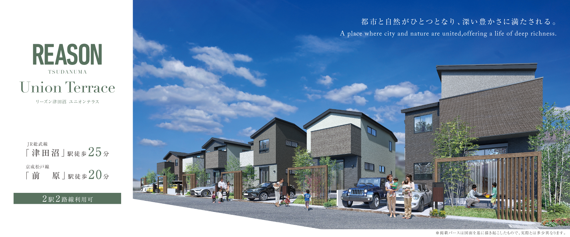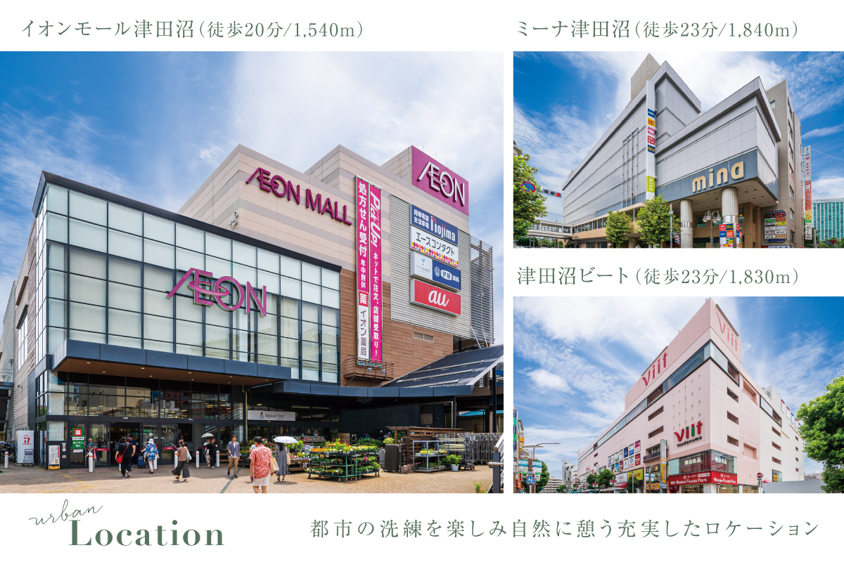 多数の商業施設が点在する津田沼エリアを日常とする地に誕生する全6邸の街づくり