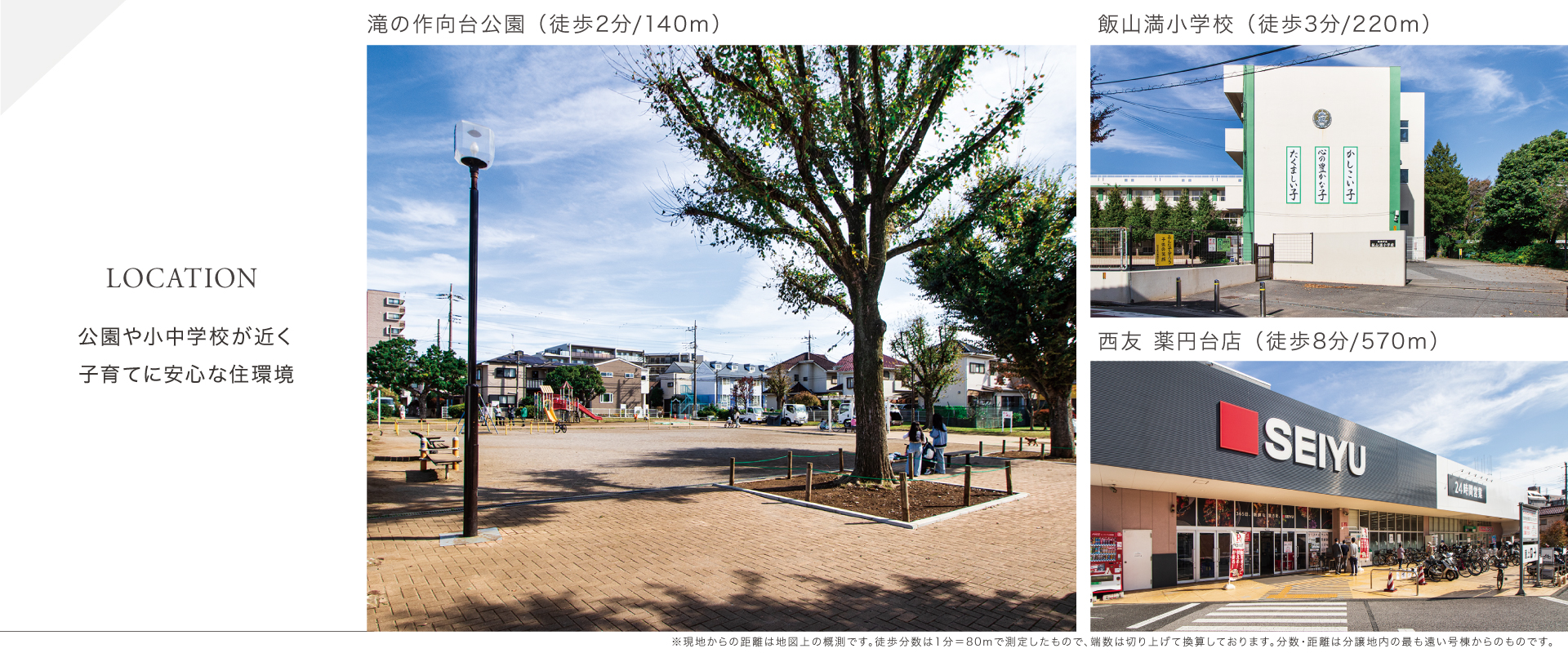京成松戸線「薬園台」駅徒歩10分、東葉高速鉄道「飯山満」駅徒歩15分の駅近の利便を享受するこの地に