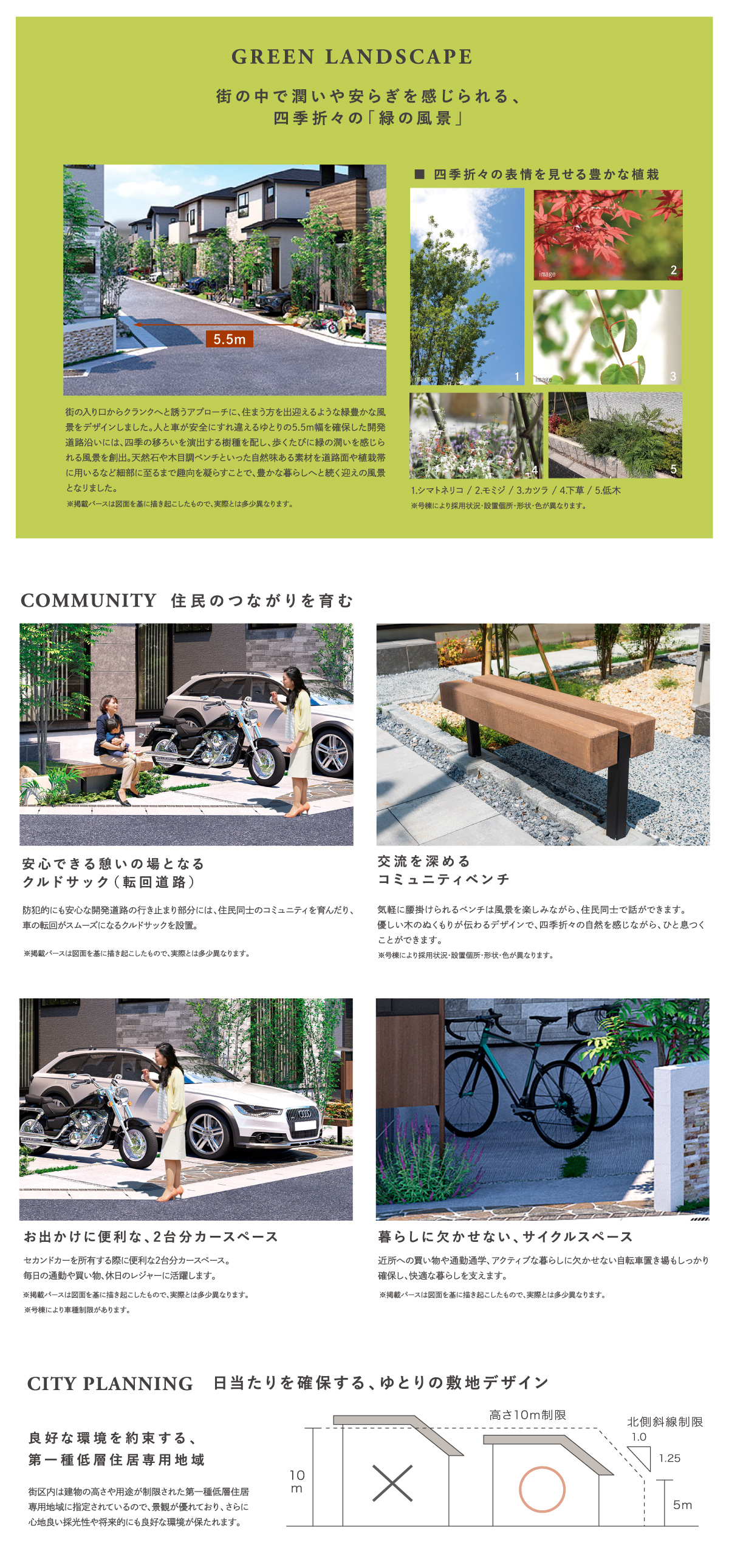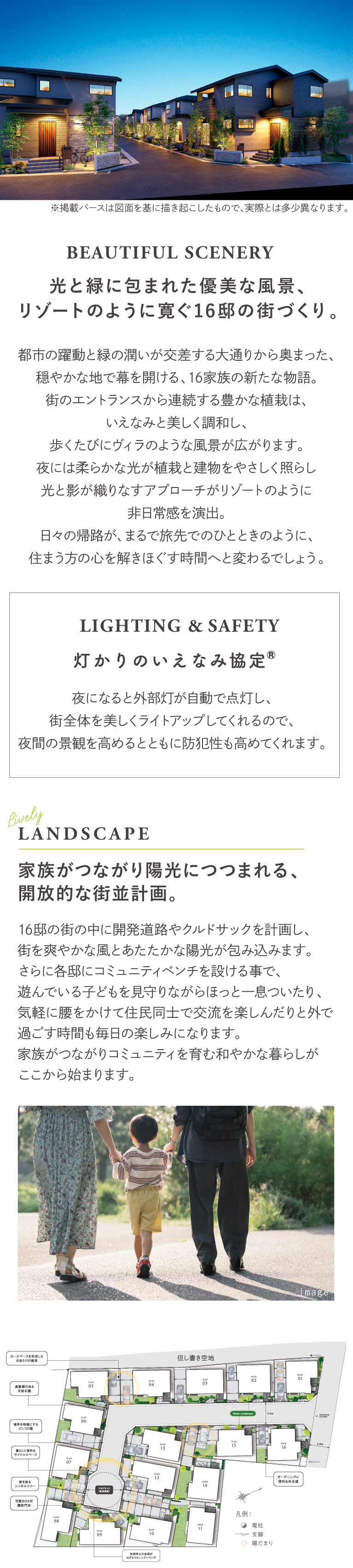 ■街区内道路を中心とした全16邸の街並み