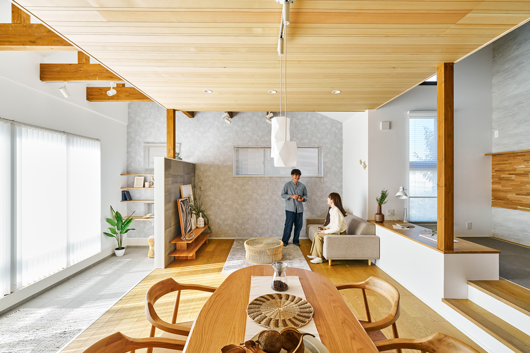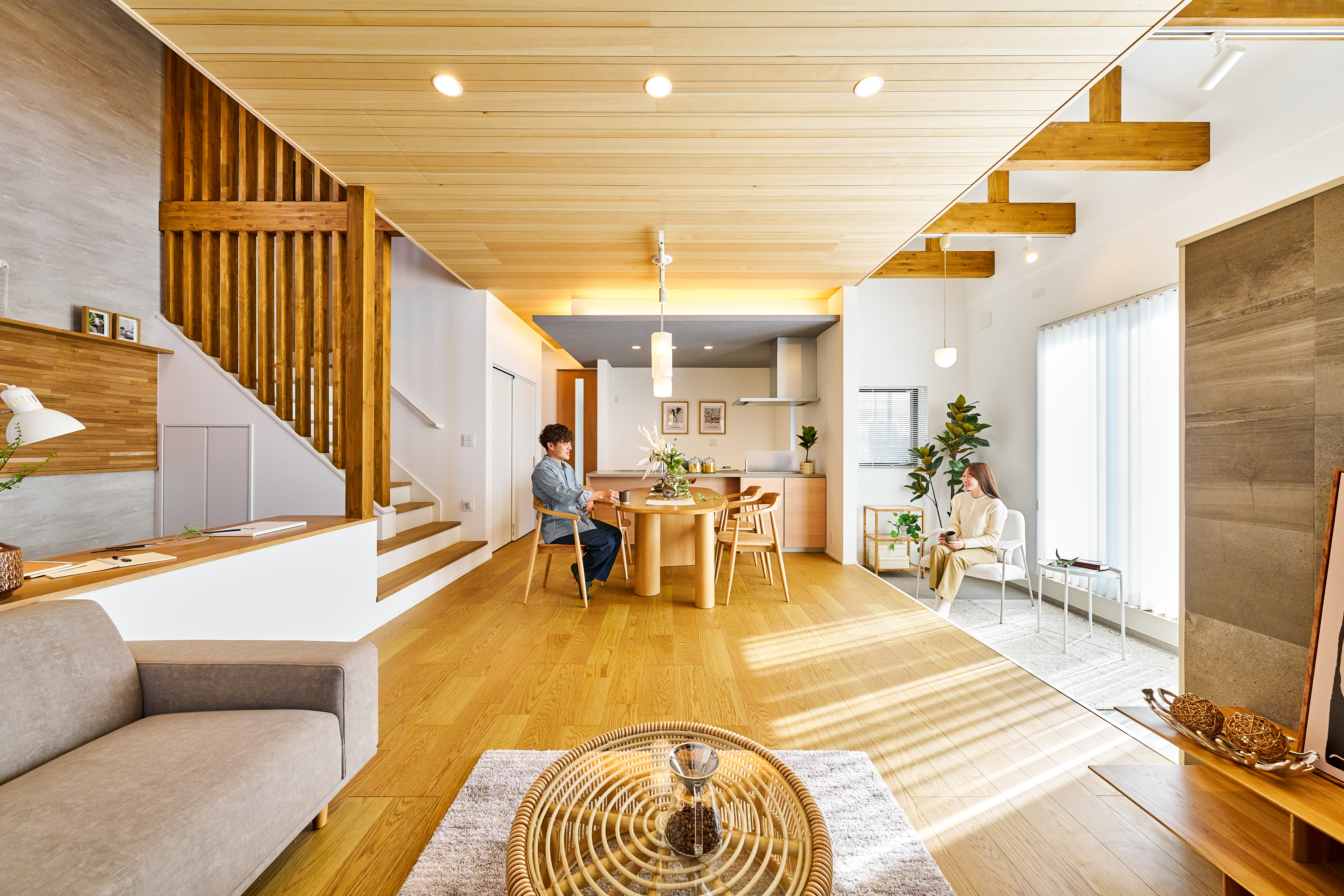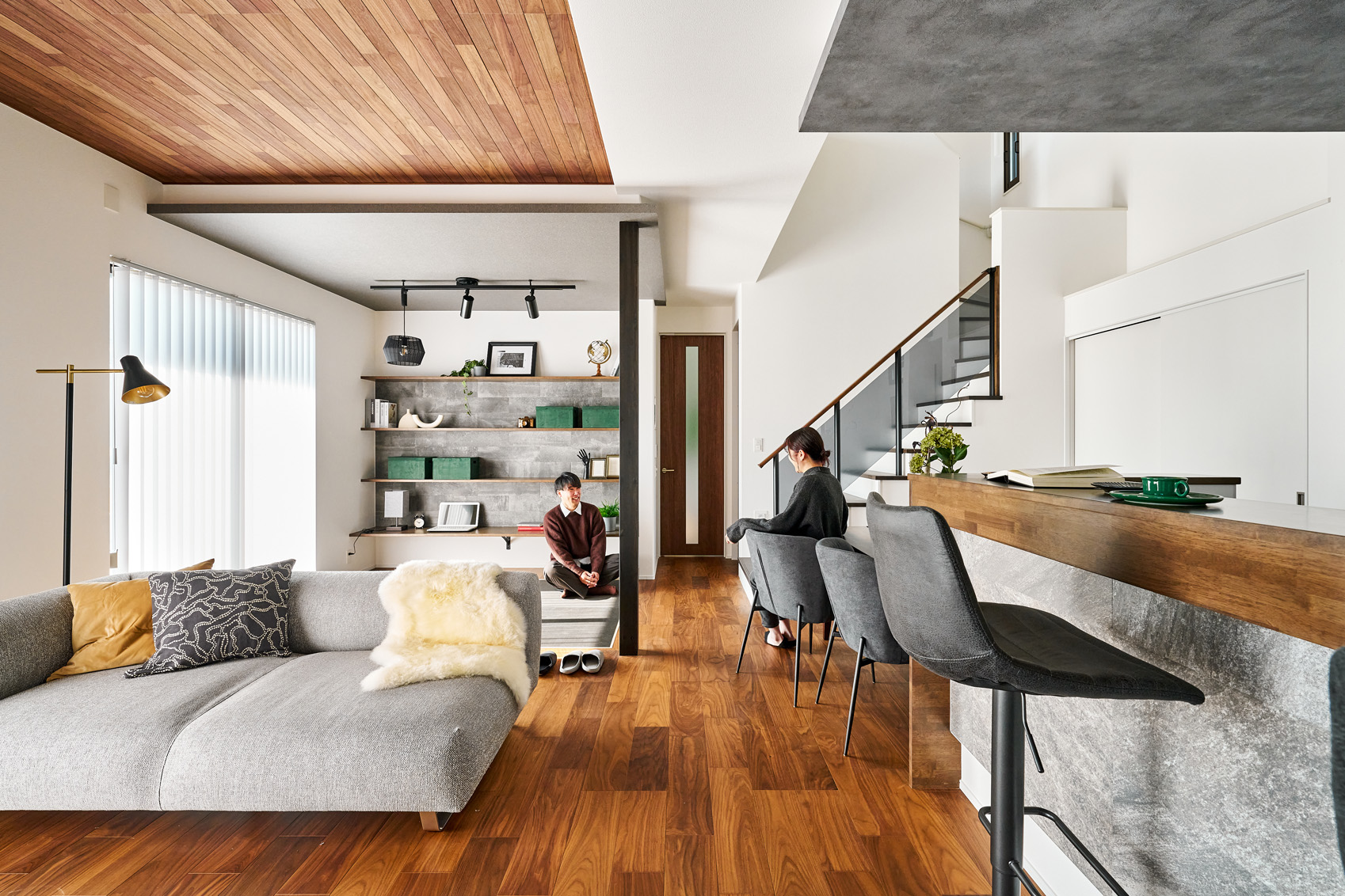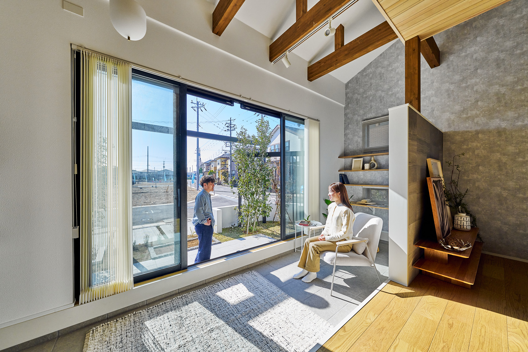 ・プライバシーと交流を心地よく両立する木目調の格子
