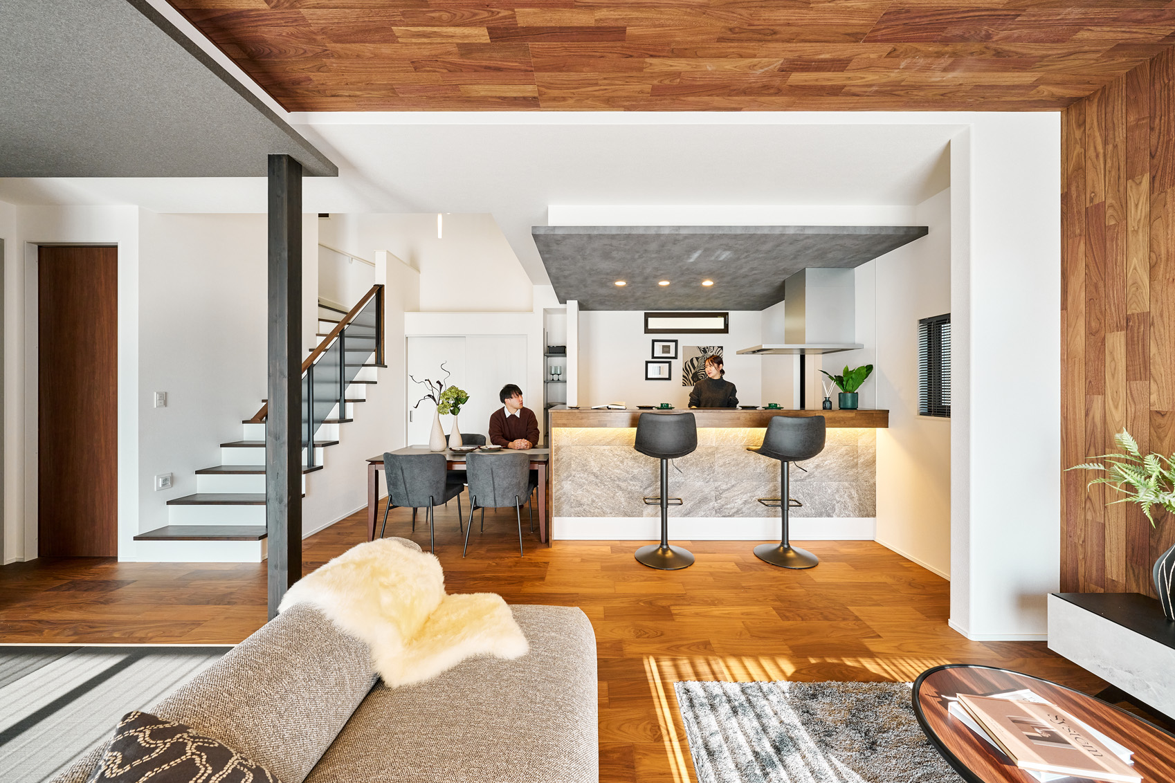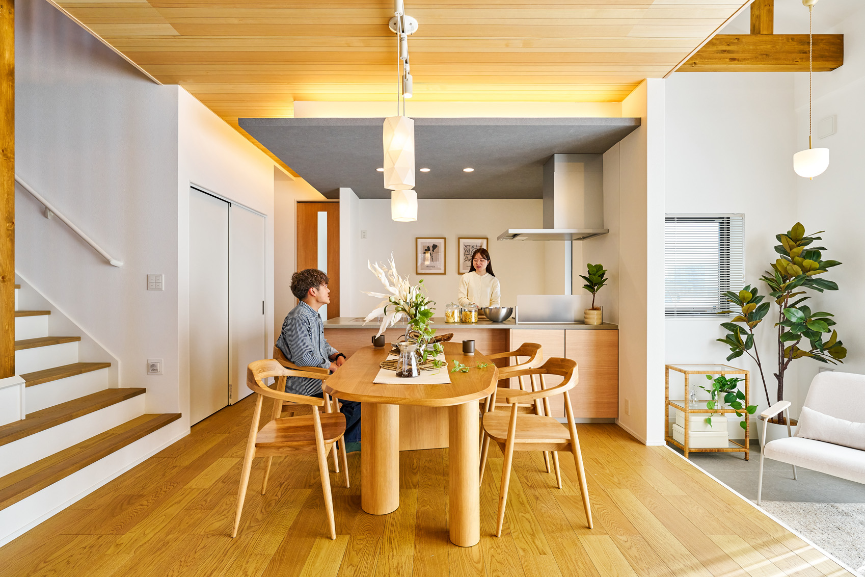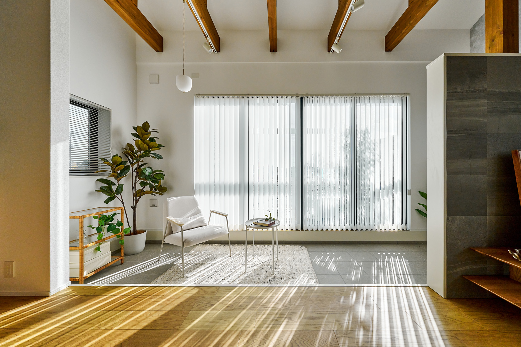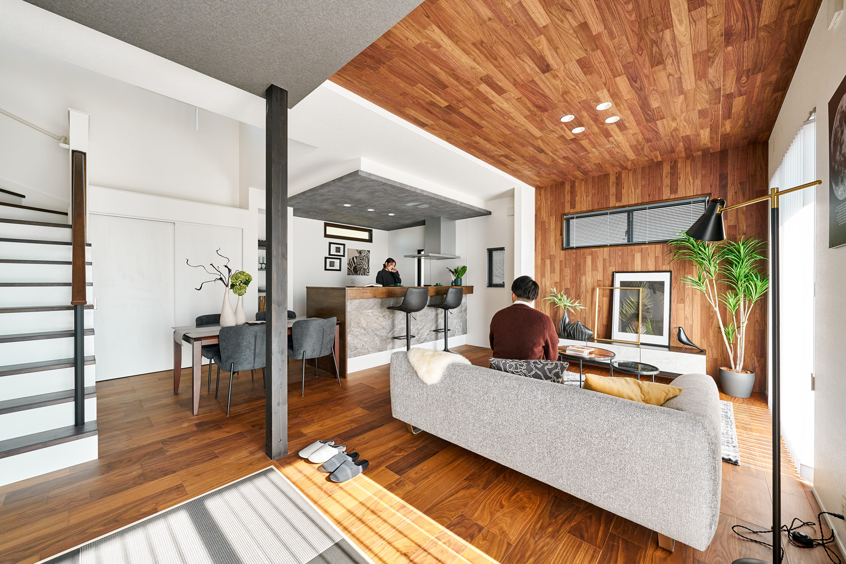 ・プライバシーと交流を心地よく両立する木目調の格子