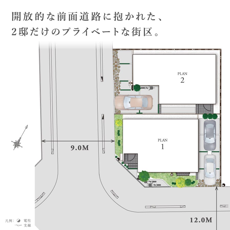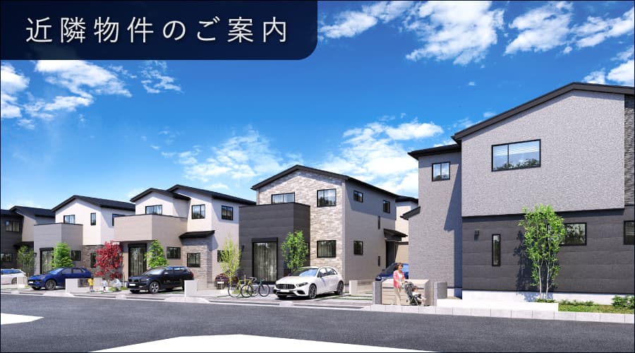 急行停車 「越谷」駅最寄 JR武蔵野線 「越谷レイクタウン」駅バス利用可 「越谷市立病院(玄関)」バス停まで徒歩6分生活施設が充実する「東越谷エリア」 越谷市花田苑 / 徒歩 8 分 越谷市立病院 / 徒歩 6 分 城ノ上小学校 / 徒歩 8 分 ライフスタイルにフィットする邸別設計の住空間 【PLAN01】段差で空間をゆるやかに仕切るステージ空間 ・2階3部屋×収納充実 ・広々としたカウンターが魅力のフルフラットキッチン ・2F全室ウォークインクロゼット設置+ホール大型収納 【PLAN02】暮らしの変化にも柔軟に対応できるフレックス空間 ・5LDK(※SOHO含む) ・開放感のある対面式カウンターキッチン ・間取り変更対応プラン(※有償工事対応) カースペース2台標準 天井高2.7mの広がりのあるリビング設計 宅配ボックス×省エネ給湯器×LD床暖房×電動シャッター×食洗器 / 標準搭載 |