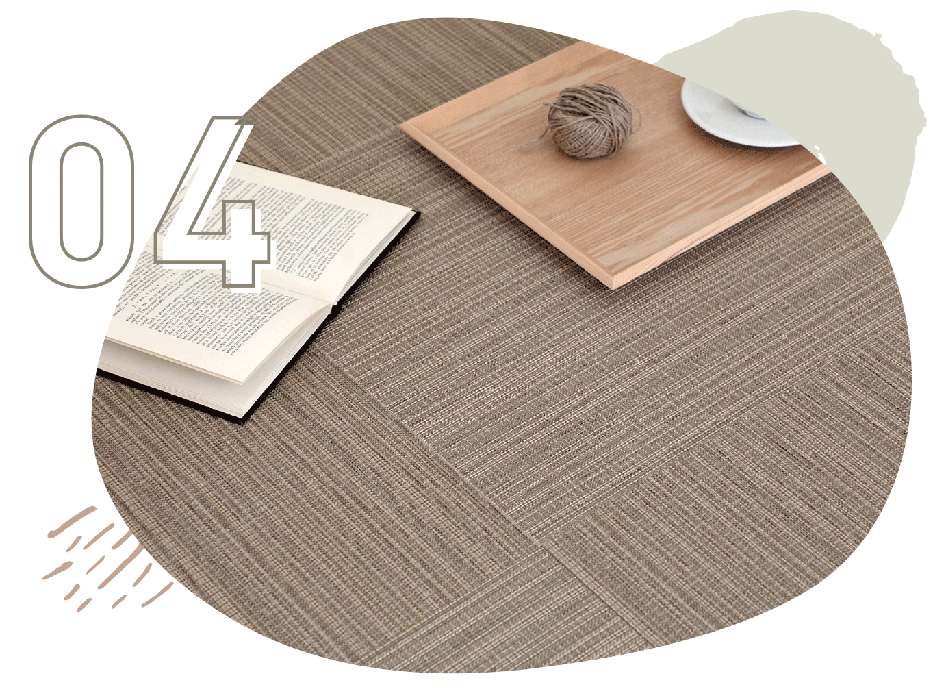 織物ならではのさらっとした感触のテキスタイルフロア。程よいクッション性と心地よい肌触りで、足への負担をやさしく軽減。小さなお子様も安心して過ごせるため、子どもの遊び場やお昼寝スペースとして最適のフロアです。