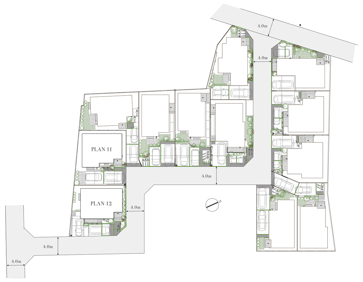全邸がゆとりの敷地面積125㎡超、南ひな壇の明るい街づくり。