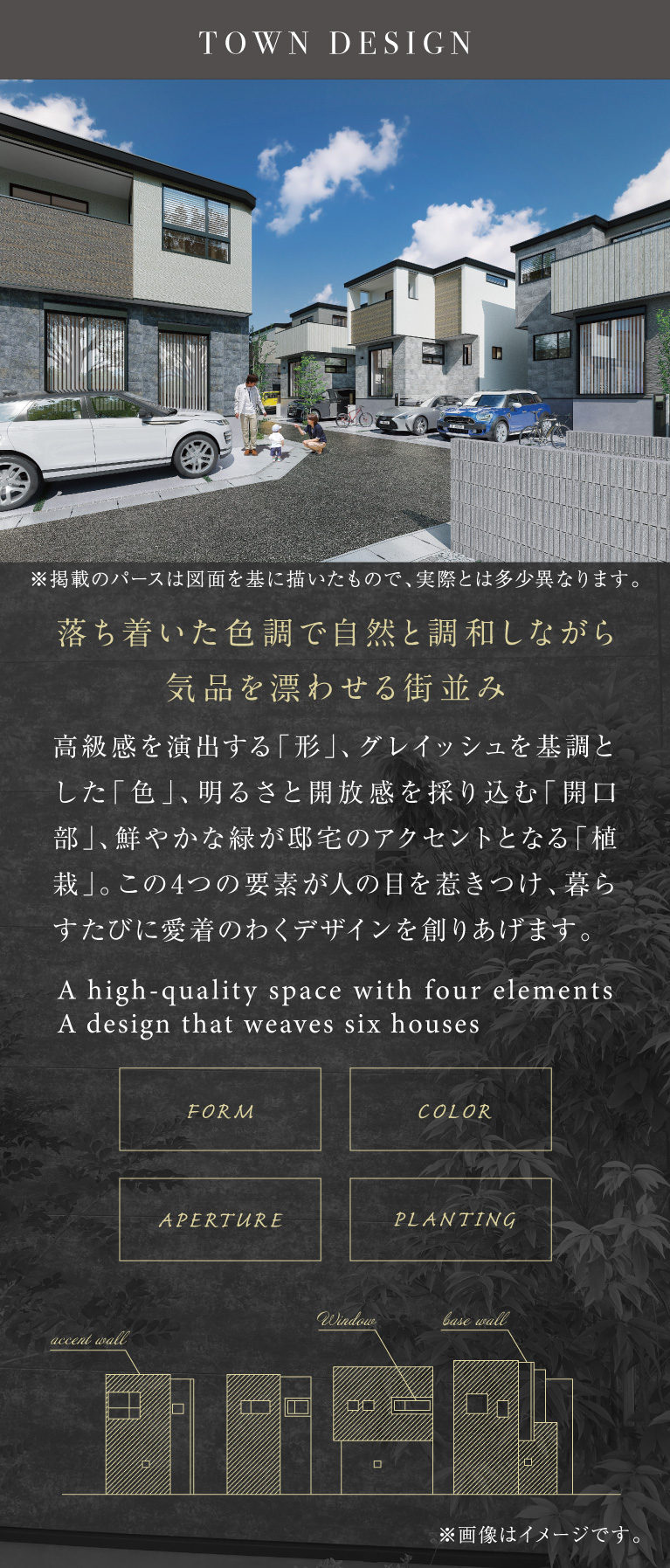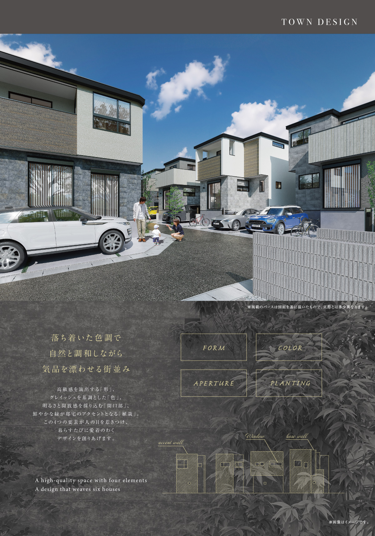全6邸が面する分譲地内道路は、車が通らない際は街のコミュニティになります。