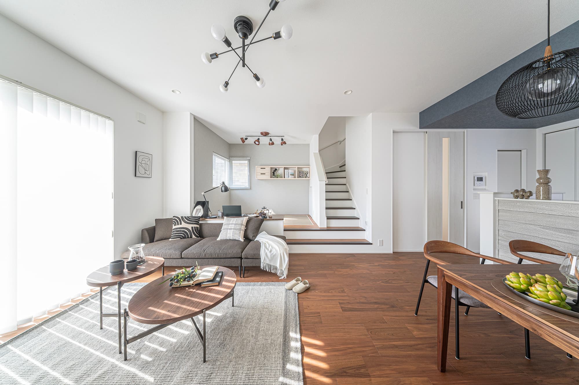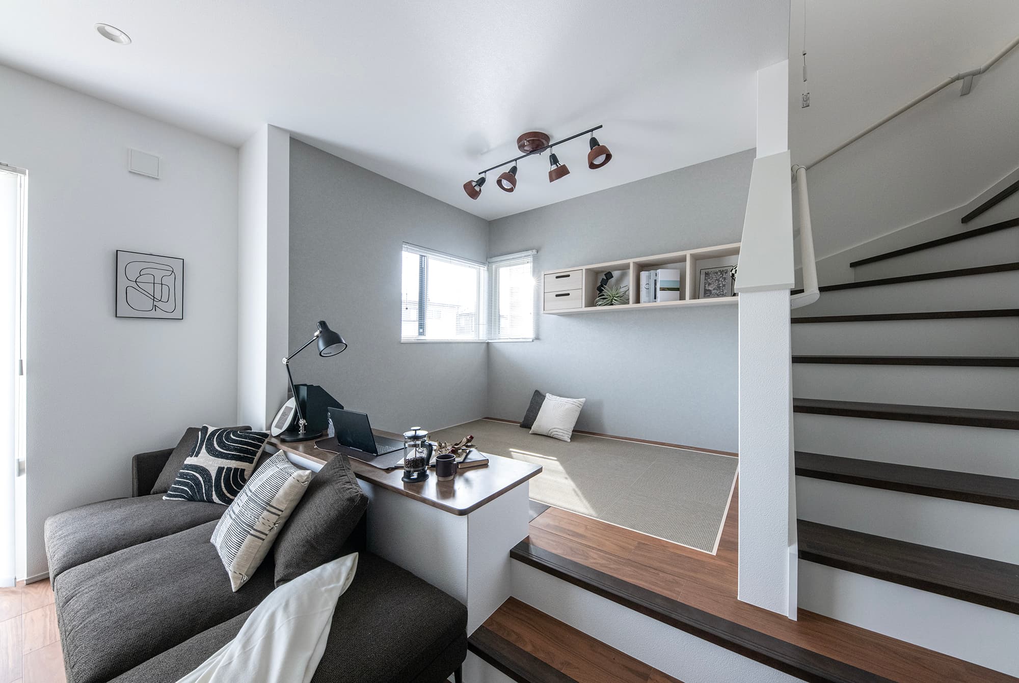 【ステージリビング】段差空間がつなぐ、日常にアートを感じる住まい