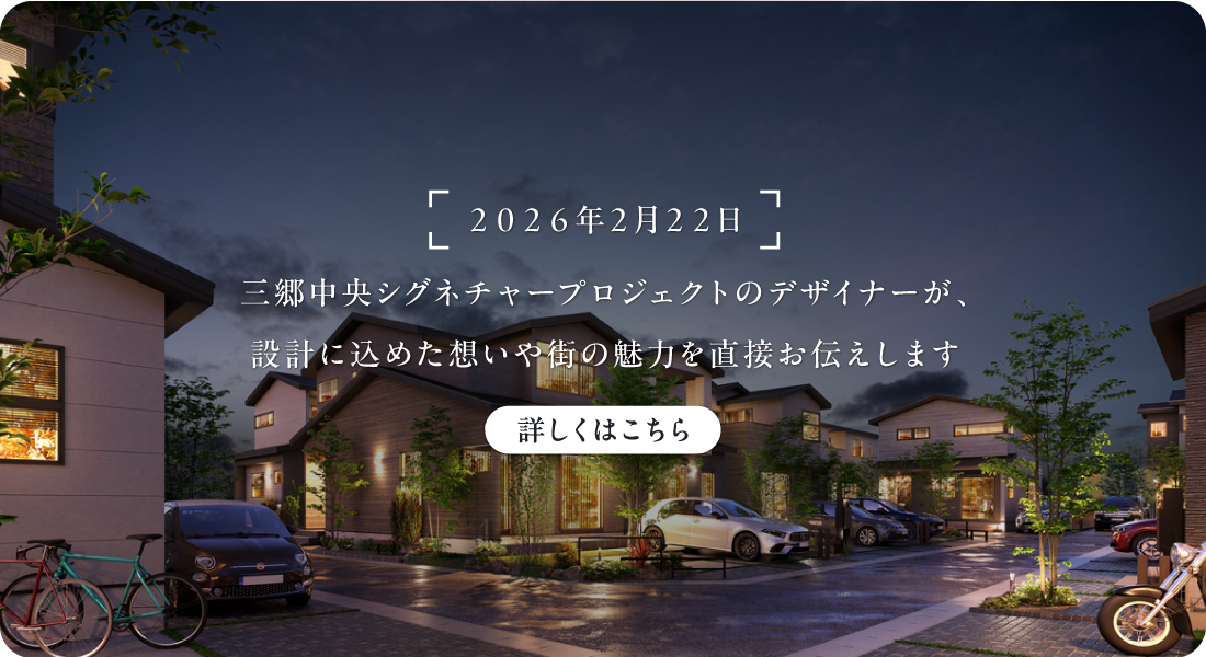 【予告広告】 2026年4月上旬販売開始予定 ※本広告を行い販売を開始するまでは契約または予約の申込みに一切応じられません。また申込みの順位の確保に関する措置は講じられません。 ※本広告を行い販売を開始した後に購入申込みをされる場合、購入申込みには条件がございます。詳細は担当営業までお問い合わせください。 ※予告広告の期間中、資料請求等は随時受付しております。お気軽にお問い合わせください。 全 19棟の開発スケール 敷地面積120㎡超 つくばエクスプレス「三郷中央」駅徒歩13分 カースペース 2台標準 |
