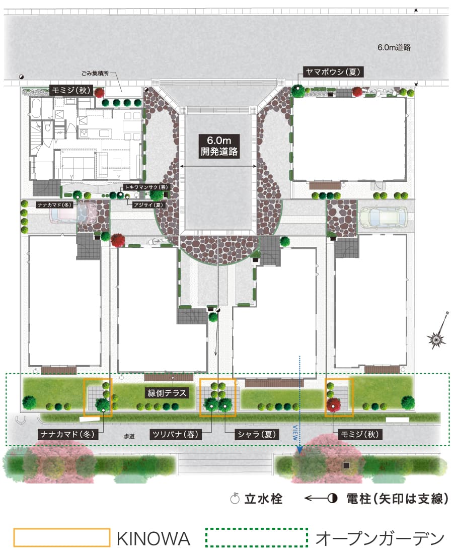 「KINOWA」で植物の手入れをしながら隣人との会話が生まれたり、「縁側テラス」や「オープンガーデン」で四季の移ろいを眺めて楽しんだり。