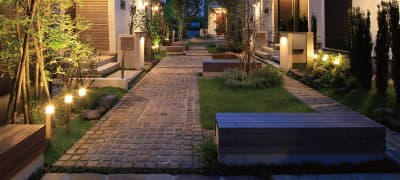 ・緑道側にも照明を配置し、景観や防犯性も高める「灯かりのいえなみ協定(R)」