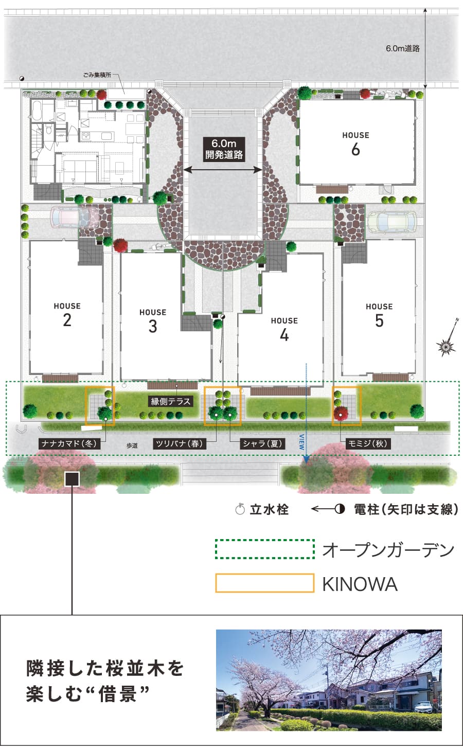 ・開放的な6.0mの広がりを持つ開発道路