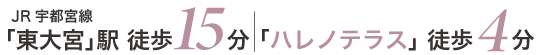 宇都宮線・湘南新宿ライン「東大宮」駅徒歩15分。