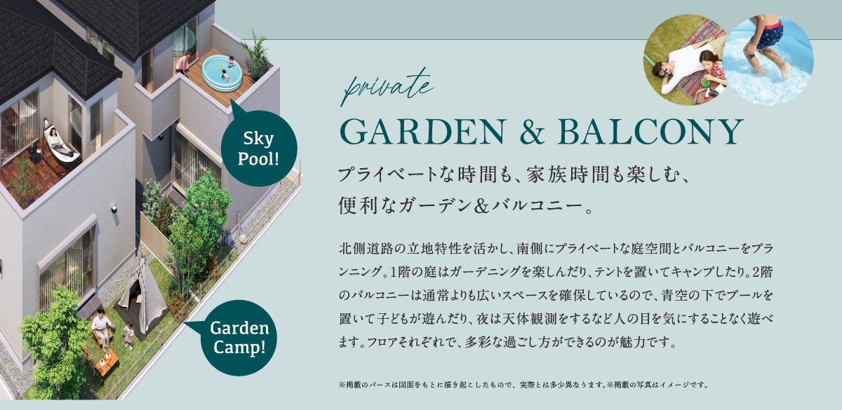 ◆庭付き+広々バルコニーでプライベートな時間を楽しめる
