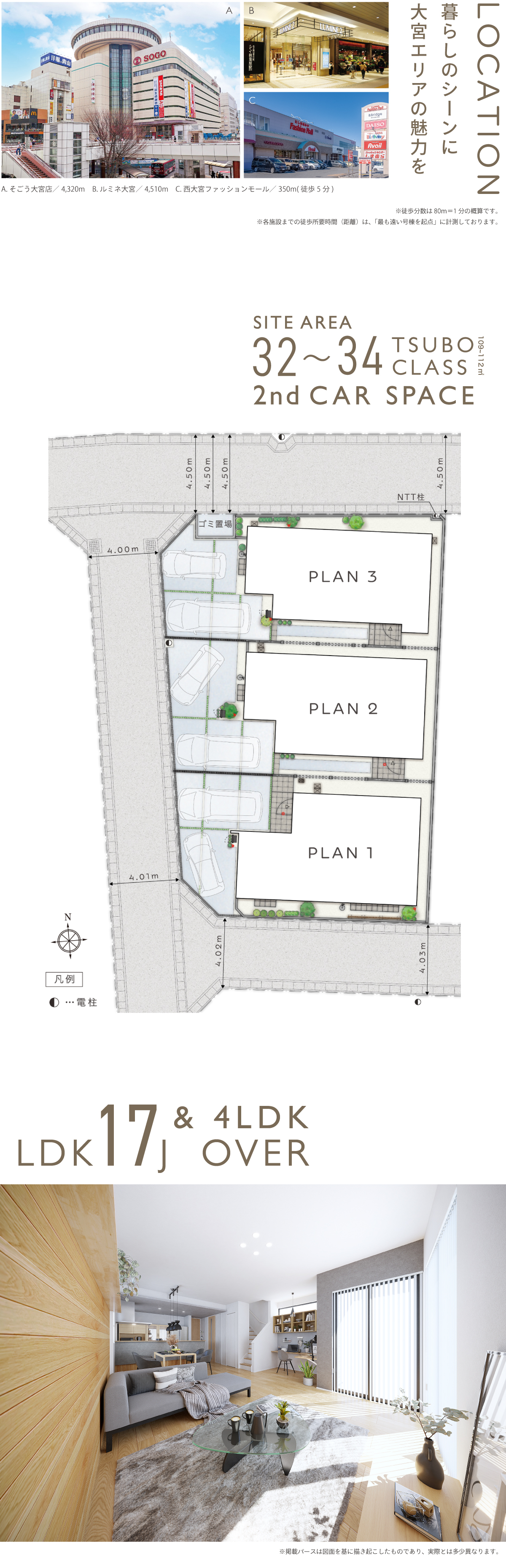 「西大宮」駅徒歩13分の立地、32坪以上(109㎡以上)の敷地に