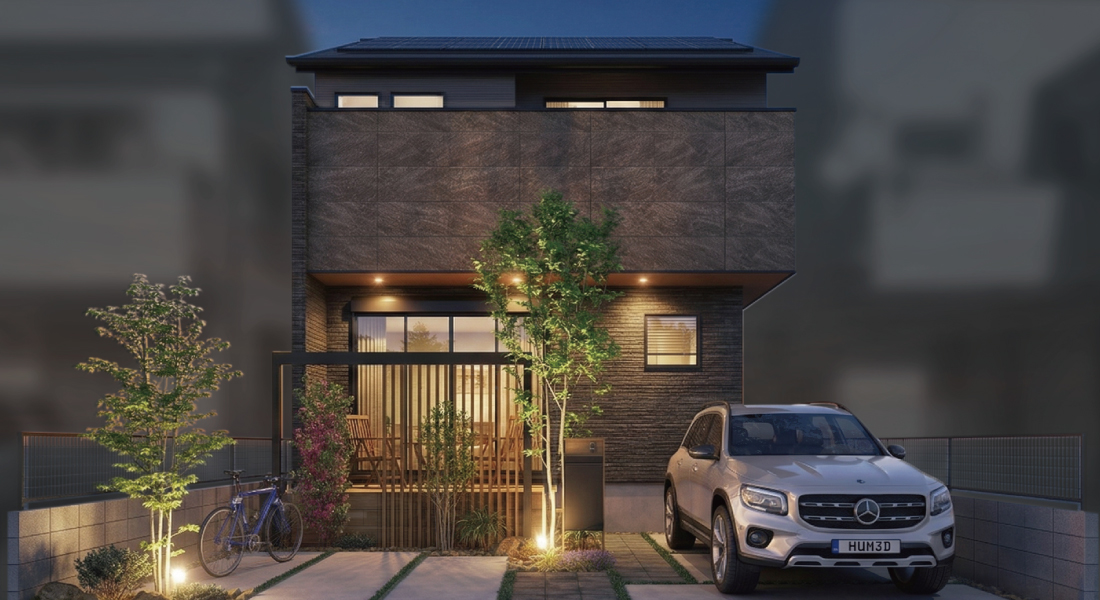 先進の技術を搭載した、スマートハウス。※掲載のパースは図面をもとに描き起こしたもので、実際とは多少異なります。